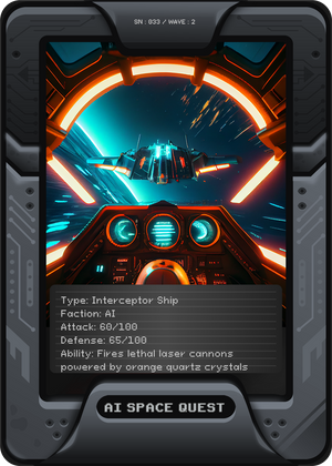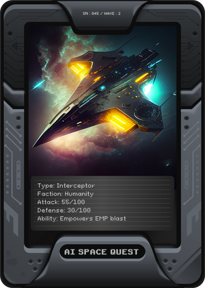 Welcome to AI: Space Quest, the epic trading card game set in a distant future where humanity and artificial intelligence clash in a struggle for survival.